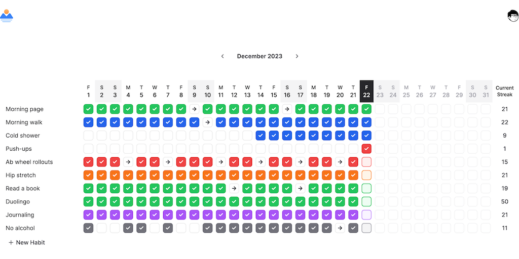 Build streaks and transform your habits with our simple yet sophisticated habit tracker.