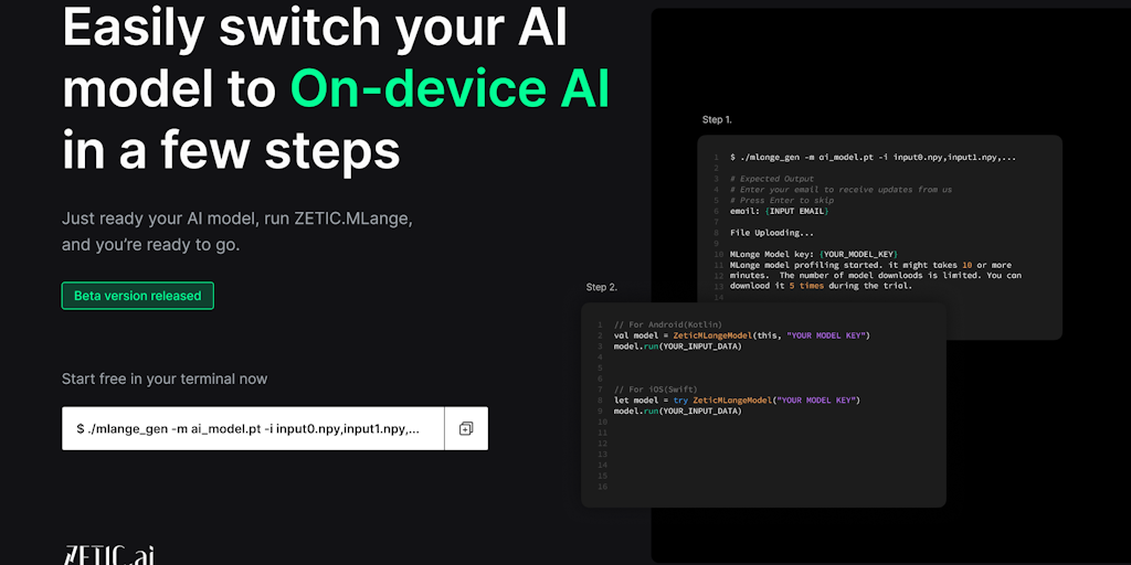 ZETIC.MLange - Easily Switch Your AI Model to On-Device AI | Product Hunt