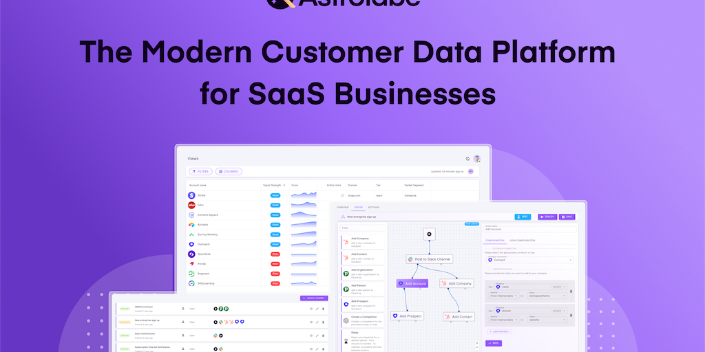 Astrolabe is a modern Customer Data Platform for Product-Led Growth SaaS. Centralize Customer data, run personalized campaigns, and drive Product-Led Sales motion—all without needing engineers. Ideal