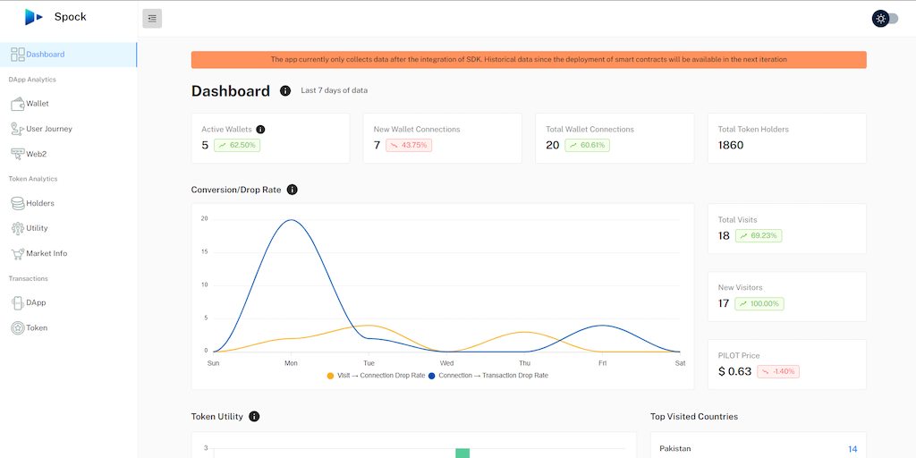 Spock is Web3’s first wallet analytics platform to provide DAOs and protocols with the metrics they need to target, understand and grow their user base. It integrates into your dApp and tracks the wal