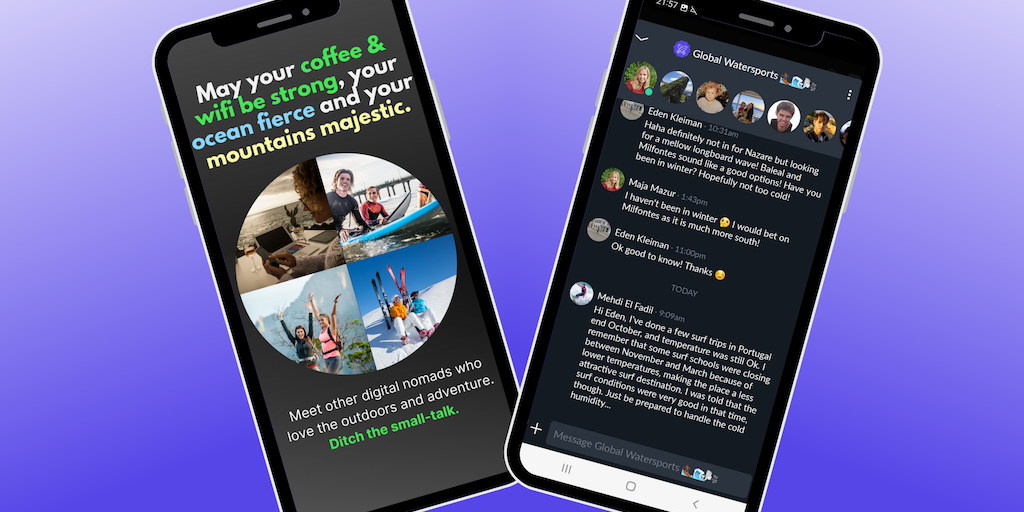 Easily meet other digital nomads or remote workers who love the outdoors and sport activities, connect online, research top spots and buddy up for outdoorsy activities in real life! Build lasting and