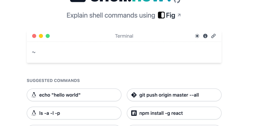 shell.how explains how your shell command works. It uses open source data from Fig (https://fig.io) and supports descriptions for hundreds of CLI tools like git, npm/yarn, docker, and aws. Contribute