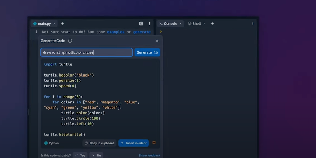 Replit Ghostwriter is an AI pair programming tool that offers four features: Complete, Generate, Transform, and Explain Code. Ghostwriter can help you code faster and be more creative. In-browser and