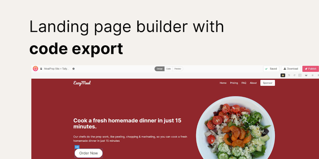 Alternative simple no code landing page builder that allows you to export HTML & CSS. Built with pre-built landing page blocks, templates and also allows you embed any thing like Tally forms, Mailchim