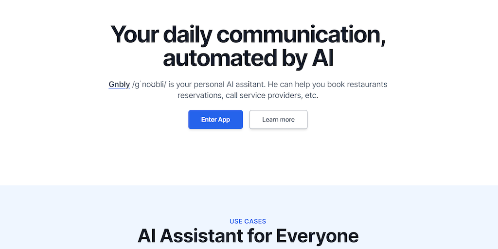 Gnbly - AI Assistant for Everyone. Automate your phone calls | Product Hunt