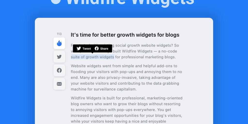Wildfire Widgets - Widget embeds to help your blog posts spread like wildfire | Product Hunt
