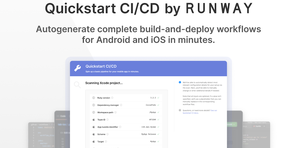 Quickstart CI/CD by Runway - Autogenerate a complete mobile CI/CD pipeline in minutes | Product Hunt