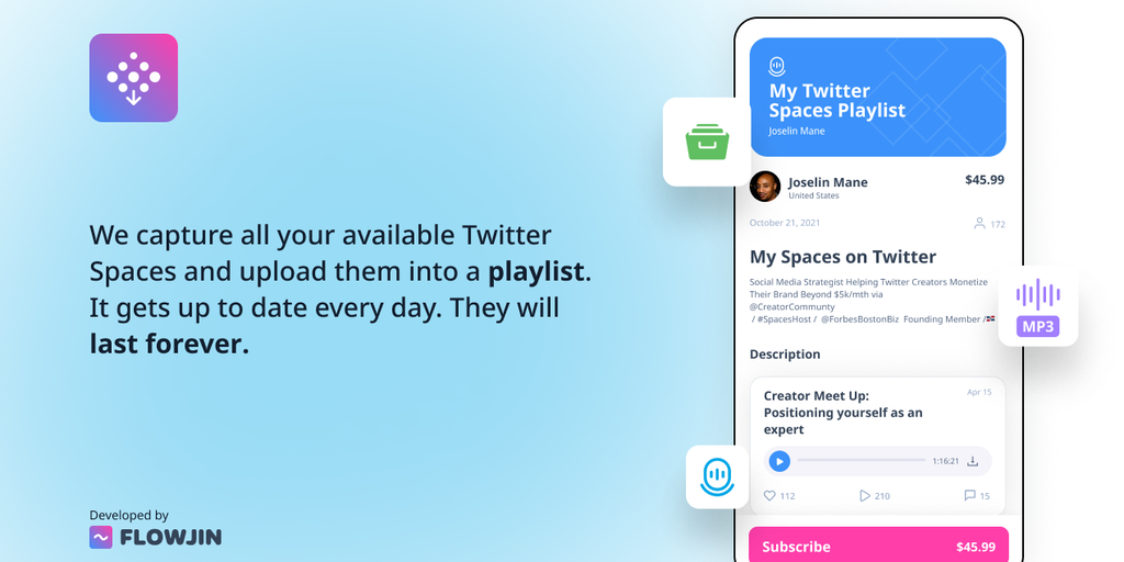 FlowInSpaces by Flowjin - Archive, share, and download your Twitter Spaces for free! | Product Hunt