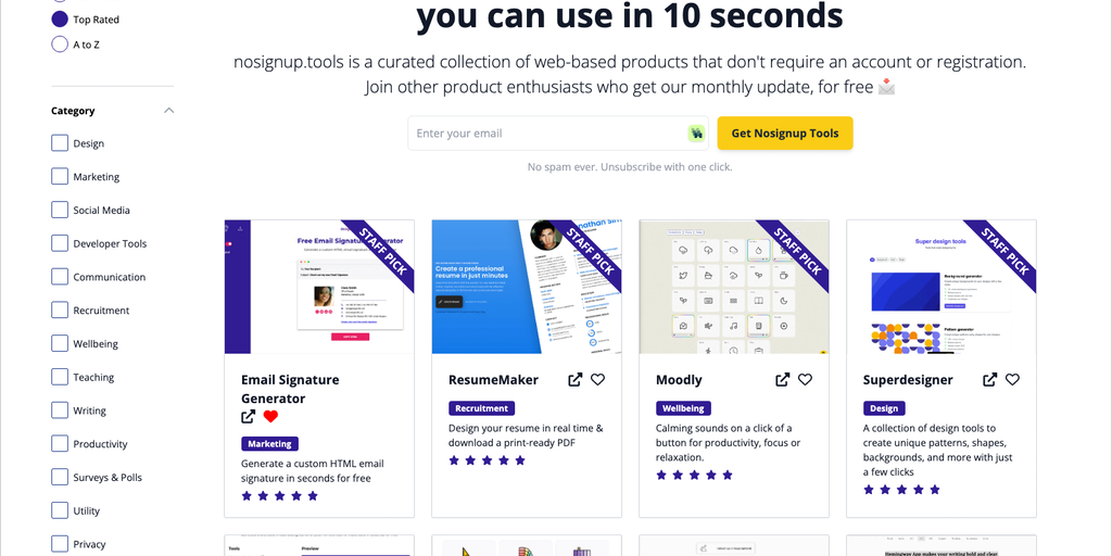 nosignup.tools - Free web apps that don't require signup | Product Hunt