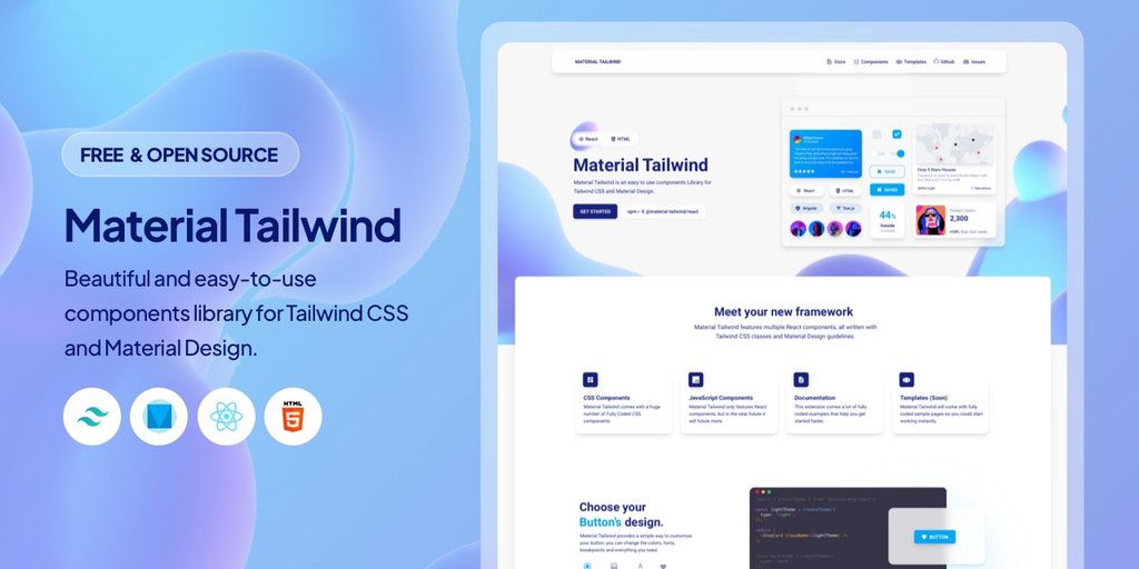 With a brand-new look and features, https://www.material-tailwind.com/?ref=producthuntfeatures multiple React and HTML components, all written with TailwindCSS classes and Material Design guidelines.