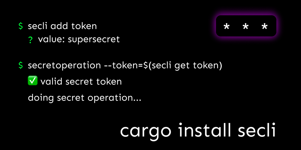 Secli is a simple CLI written in rust that lets you store secrets locally and retrieve them as needed. They are meant for applications like - secretoperation --token=$(secli get token)