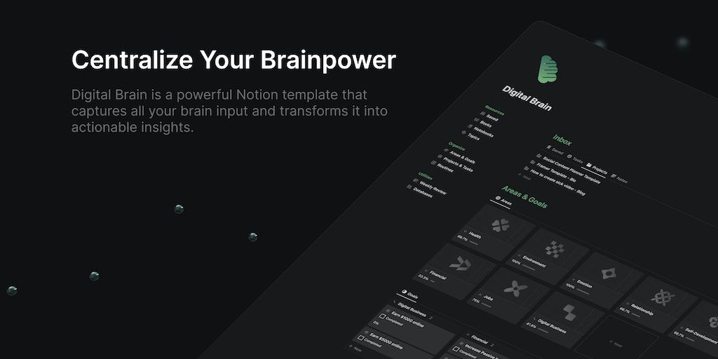 The Digital Brain is a Notion template that provides a structure for managing and accessing digital information. It is based on the Second Brain concept by Tiago Forte and is designed to enhance cogni