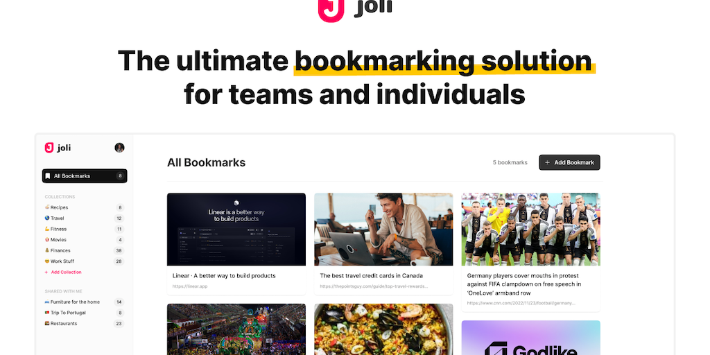Joli Bookmark Manager - The ultimate bookmarking solution for teams and individuals | Product Hunt