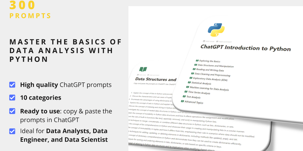With "Introduction to Python" you'll embark on a transformative journey into the world of Python and data analysis. Use ChatGPT prompts as a co-pilot in your learning journey.