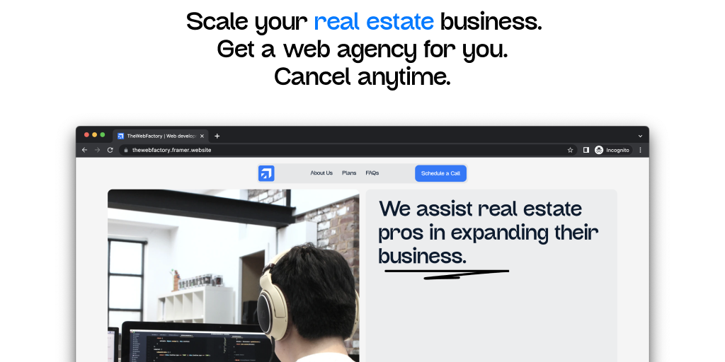 TheWebFactory is the web development subscription for real estate agents and real estate agencies. Get everything you need for your website with an experience and dedicated team behind the scenes, wit
