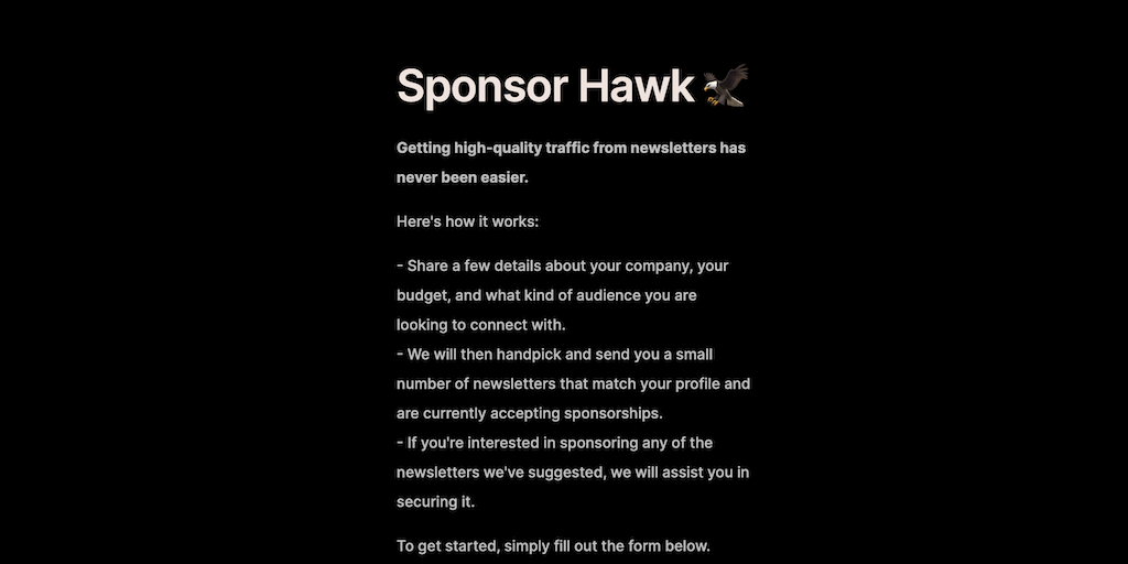 Sponsor Hawk - Get high-quality traffic from newsletters | Product Hunt