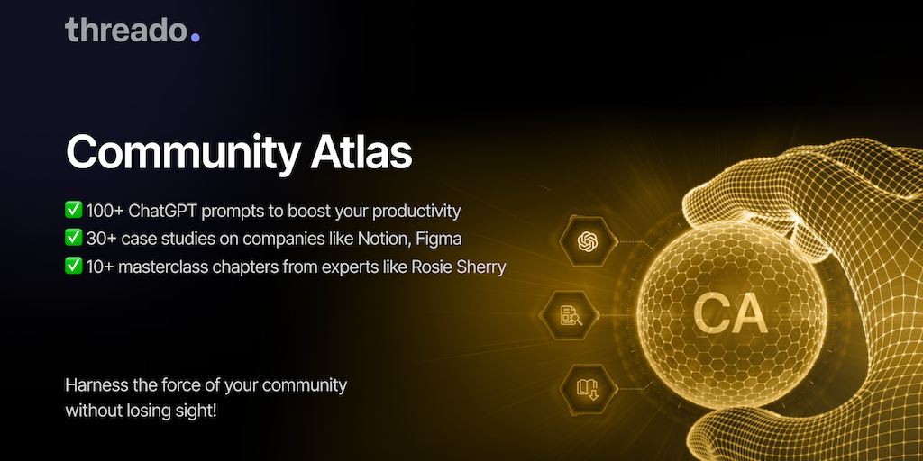 🪄 100+ ChatGPT prompts for community builders. 📚 30+ case studies on community-led companies. 🔖 10+ masterclass chapters from community leaders. Unlock proven strategies by experts from Notion, Figma,