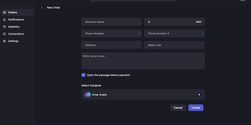 A Delivery management tool, to track orders status, assign orders to delivery people, and much more.