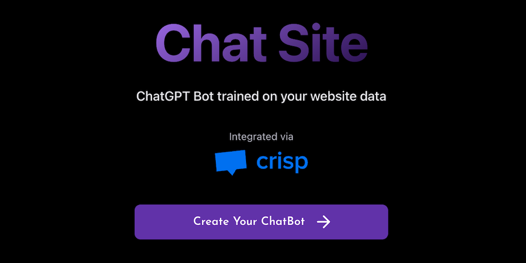 ChatSite is a ChatGPT Bot trained on your company data that integrates with your existing customer support tool, starting with Crisp.chat