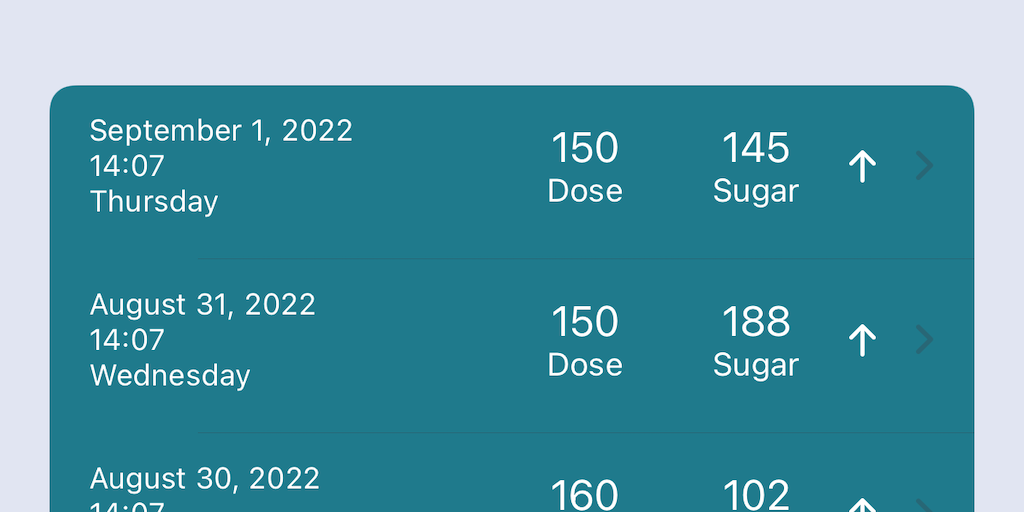 The app allows you to track the dosage of insulin and how it affects your blood sugar level. Write down the dose you took and if you did the measurement, write the blood sugar level. You can easily vi