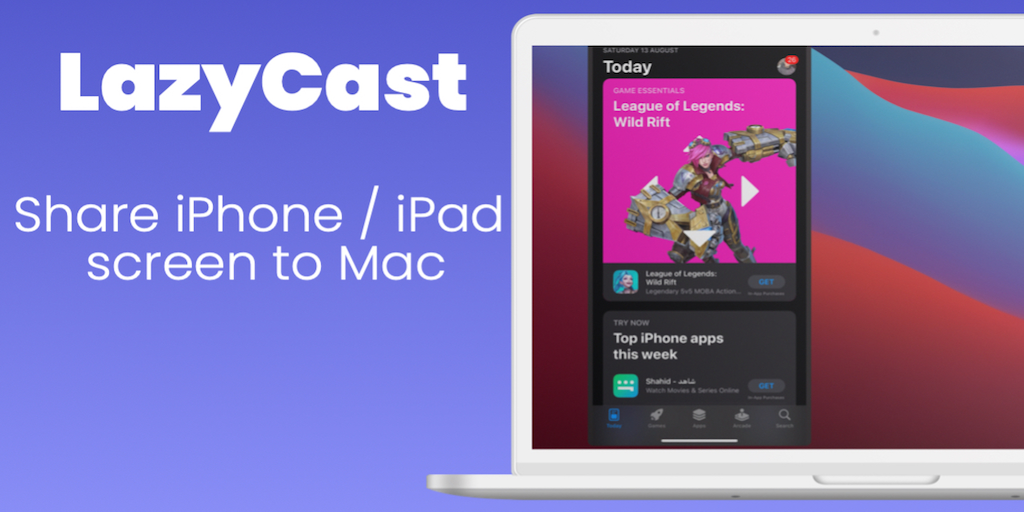 LazyCast for you to share your iPhone / iPad screen to your Mac with simplest way. How it works: 1- Open LazyCast app. 2- Make sure your devices plugged in. 3- From "Devices" menu, you will see the li
