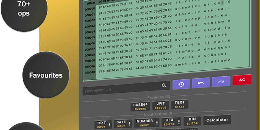 The missing calculator for developers consists of many diverse operations that are needed by developers in their everyday work. We've reimagined what a calculator can be for a developer.