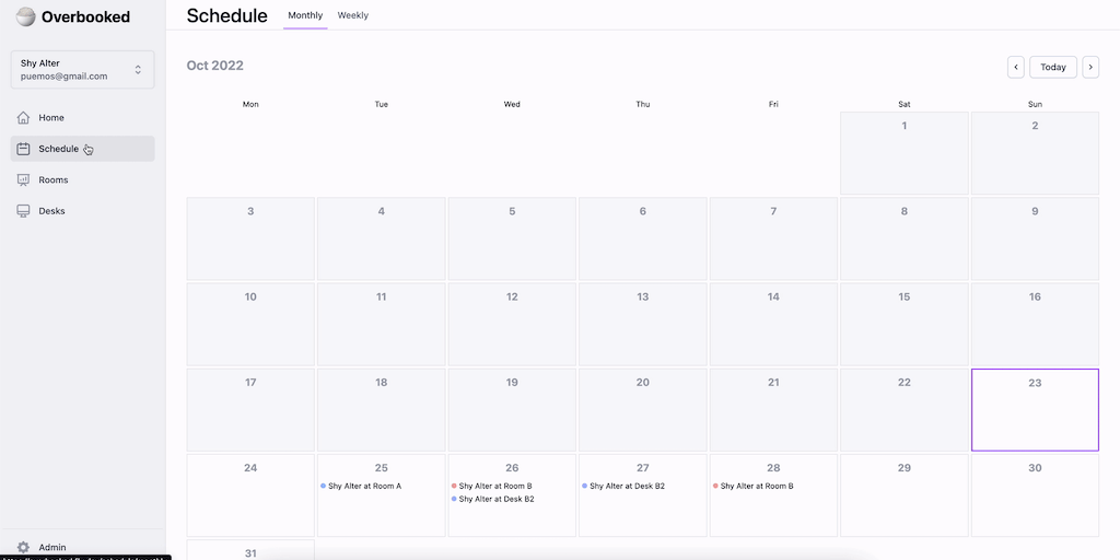 Overbooked is a self-hosted workplace platform designed to make the process of managing co-working spaces easier, and mostly free. Co-working owners can manage their space, allocate rooms, and provide
