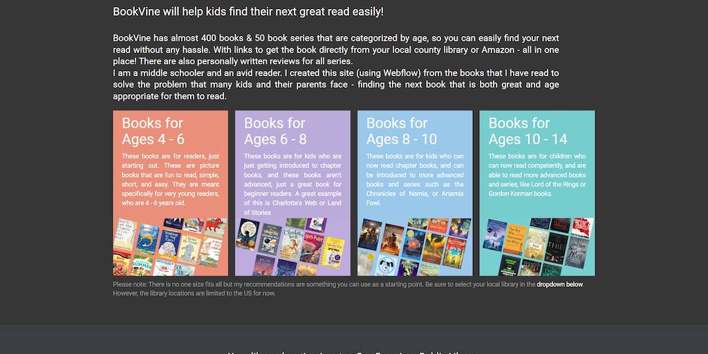 BookVine.io - Help kids & parents find age suitable books w/ library links | Product Hunt