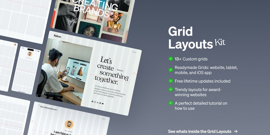 Grid Layouts Kit is an easy-to-use, Grid layouts that has everything you need to create pixel-perfect designs, including 13+ custom grid layouts for websites, portfolios, SaaS, responsive, & app desig