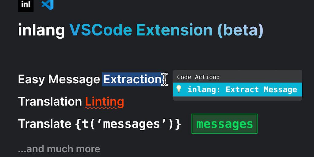 inlang’s VSCode Extension (beta) was built to help developers working on globalized (i18n) codebases, making it possible to work efficiently with a hand full of helpful features.