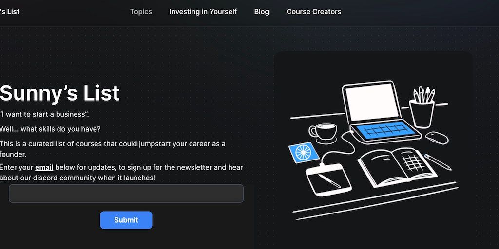 Sunny's List - A list of courses to jumpstart your career as a founder | Product Hunt