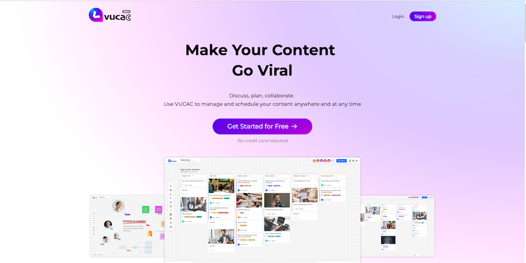 Make Your Content Go Viral: Discuss, plan, collaborate. Use VUCAC to manage and schedule your content anywhere: - Higher quality topic planning - Easier task management - Greater efficiency in organiz