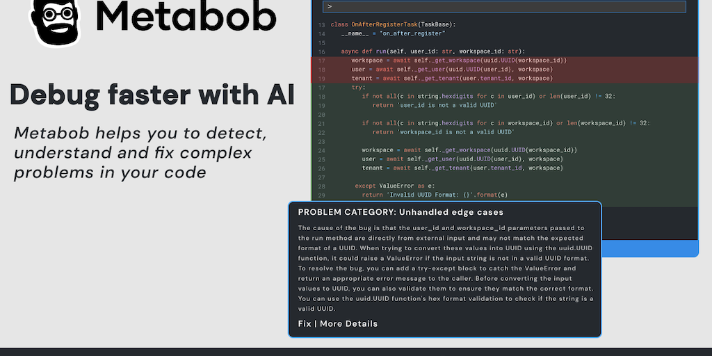 Metabob - Automate debugging and refactoring with AI | Product Hunt