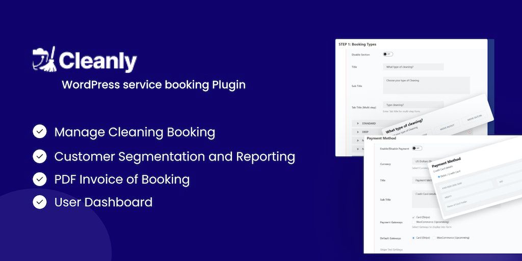 Cleanly is the most effective WordPress cleaning service booking plugin for online booking customization and automation. This amazing WordPress cleaning service booking plugin offers complete reservat
