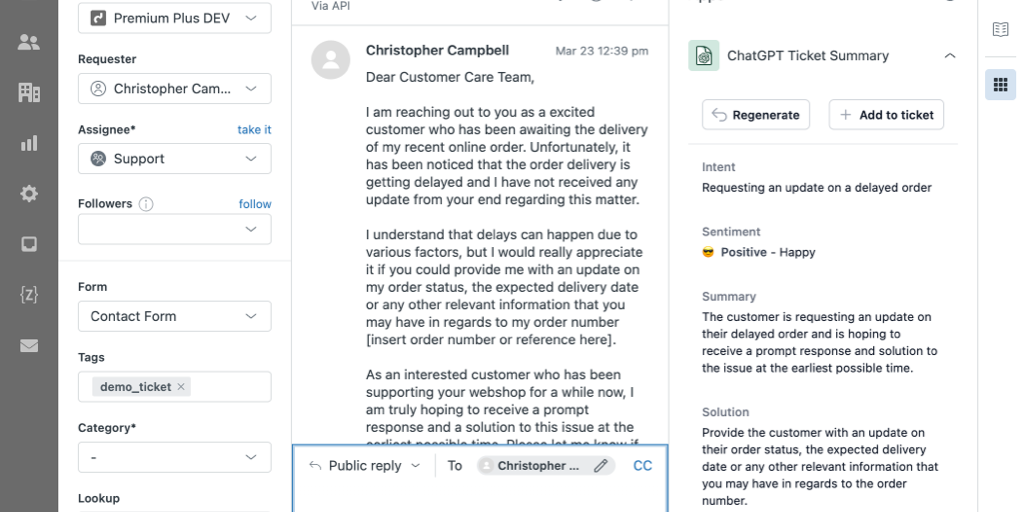 ChatGPT Ticket Summary for Zendesk - "Use OpenAI's ChatGPT to summarise Support tickets | Product Hunt