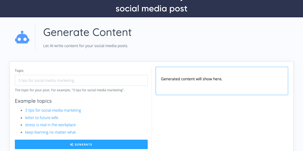Looking to quickly and easily generate high-quality social media content? This AI content generator will take any topic from you and write a completely genuine and high-quality social media post about