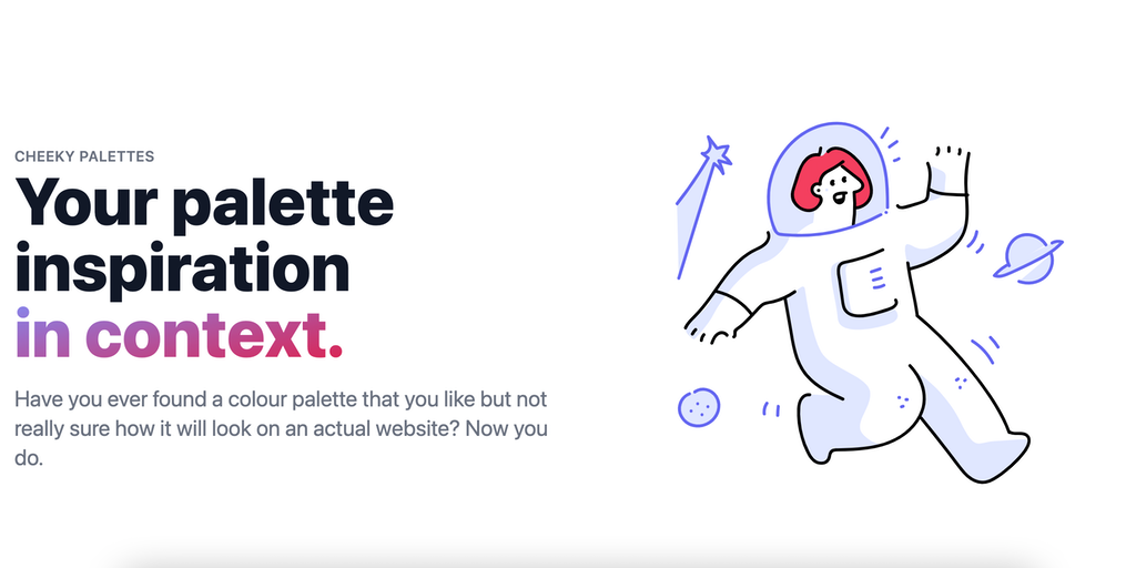 Cheeky Palettes allows you to get a colour palette from another website (or use our inspiration library) and see how it will look like on a real landing page. It also generates an automatic Tailwind shades for your colours which you can adjust further.