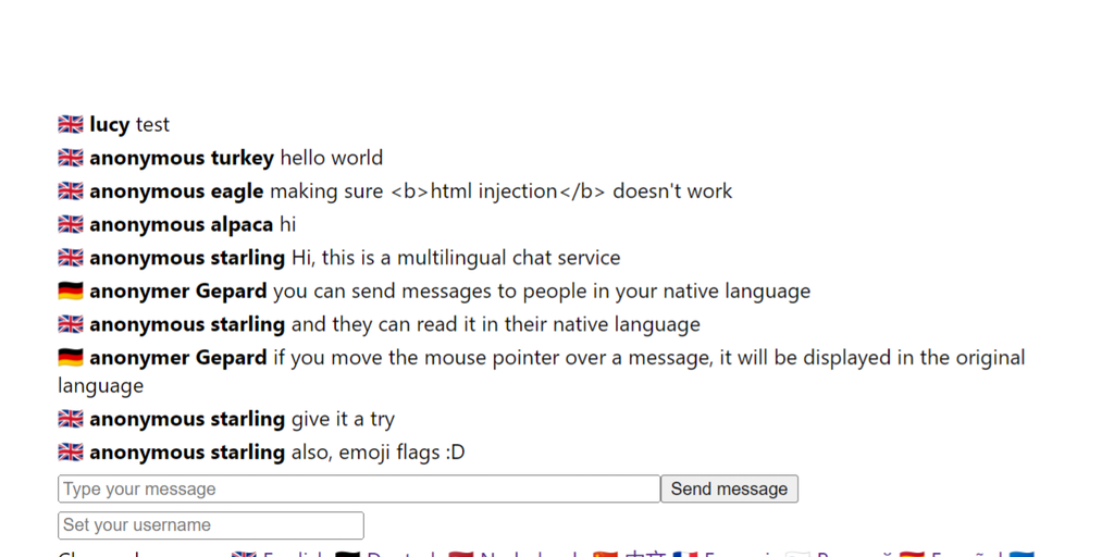 bilingual.chat is a place where you can talk in your native language, and everyone else's messages will be displayed in your language