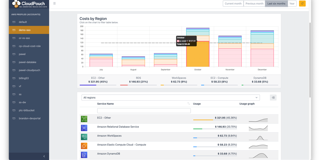 CloudPouch is a desktop application to analyze and reduce AWS costs. Use clickable charts & automated insights to instantly find waste! Your billing data is not shared with anyone (even us)! Supports