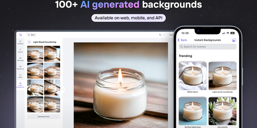 Stop paying for stock backgrounds or expensive studio time! Our instant background generator uses the power of AI to create realistic, studio-quality product images in seconds—from anywhere and on any