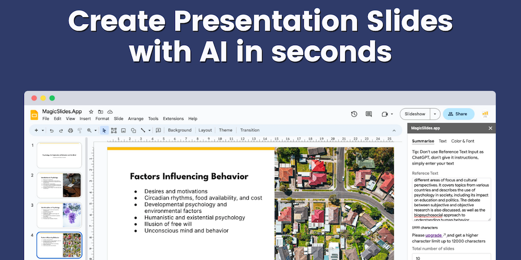 Create stunning slides effortlessly with MagicSlides, an AI-powered app that automates presentation creation. Generate professional visuals in seconds and revolutionise your presentation game! ✨🚀