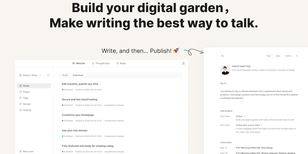 Gridea - Build Your Digital Garden, Write, and Publish with Ease | Product Hunt