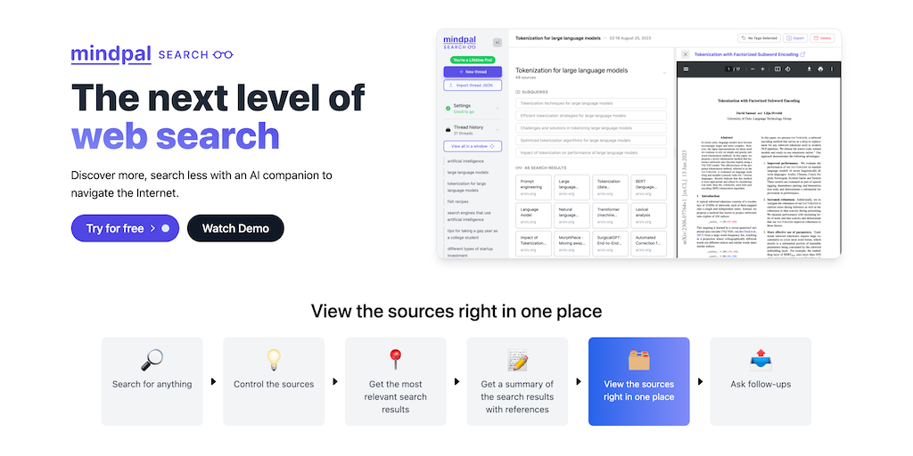 Experience the future of search with MindPal Search! Say goodbye to overwhelming results and hello to effortless, efficient searching. Our AI sidekick instantly understands your questions and delivers