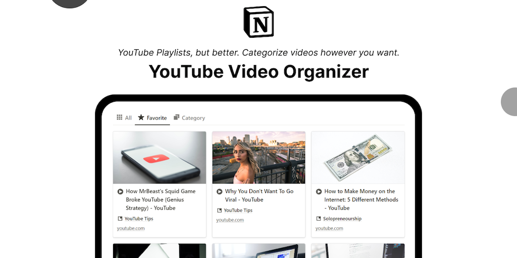 YouTube Video Organizer - Organize your favorite YouTube videos in Notion | Product Hunt
