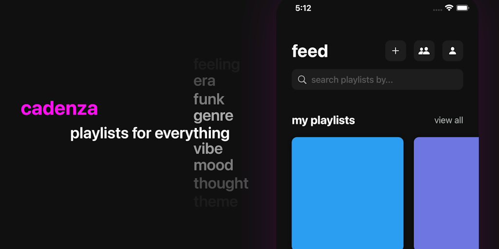 cadenza is a free mobile app that helps you discover, create, and collaborate on unique playlists for every vibe. collaborate with a global community to create public playlists, explore an endless col