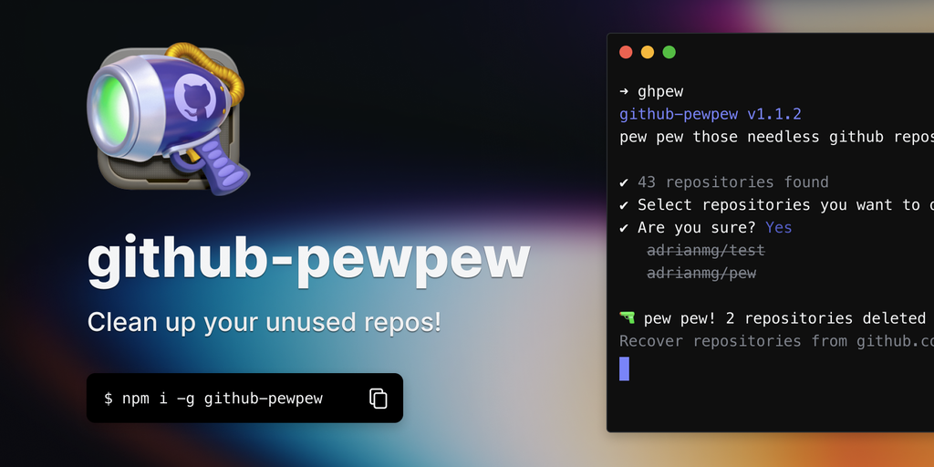 github-pewpew - Pew pew needless GitHub repos! Clean up your repos via CLI | Product Hunt