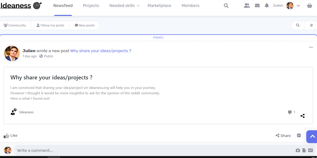 Ideaness - Social media platform and marketplace for entrepreneurs | Product Hunt