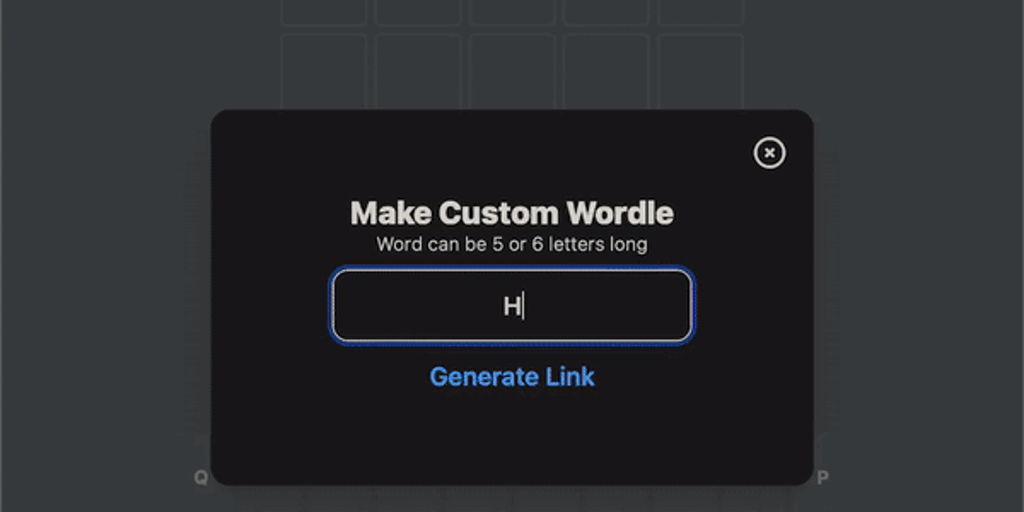 Make and share your own words in this version of Wordle! Wordle is a popular game with the aim of guessing the hidden word in 6 tries. This version lets you generate a link for a custom word for you t