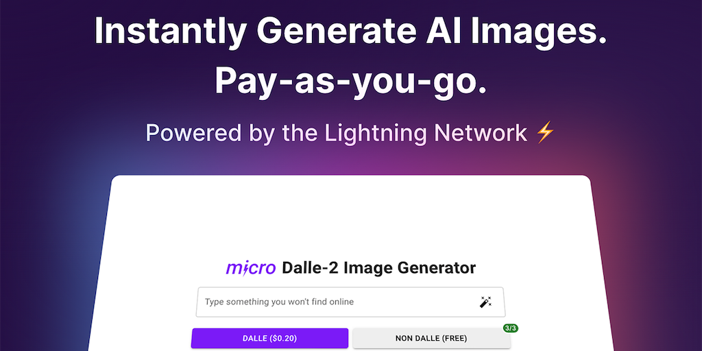 micro Dalle-2 - Pay-as-you-go Dalle-2 Image Generator Powered by Bitcoin⚡ | Product Hunt