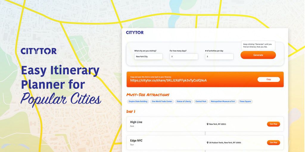 CityTor - Easy itinerary planner for popular cities | Product Hunt